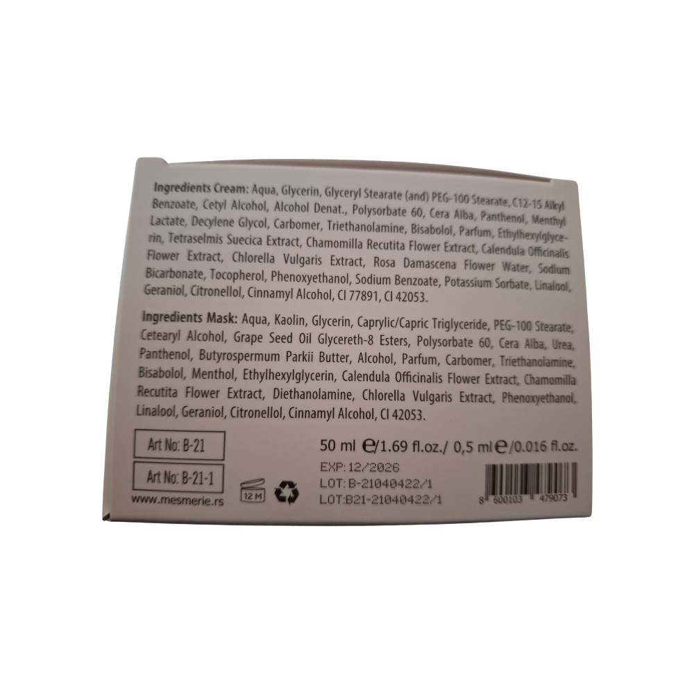 Uporaba: masko nanesite na problematična področja kože v skladu z navodili na nalepkah. Kremo nanesite zjutraj in zvečer na predhodno očiščen obraz.