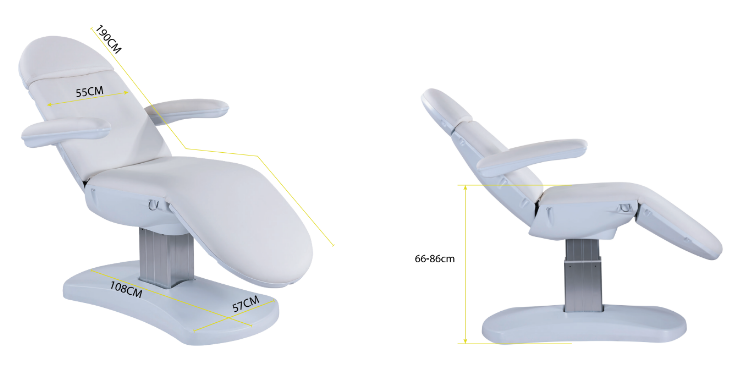 Enostavna nastavitev: Naslonjalo in sedež kozmetičnega spa stola sta enostavno nastavljiva z bočnim gumbom Effortless, kar omogoča priročno prilagajanje položaja stranke med uporabo.