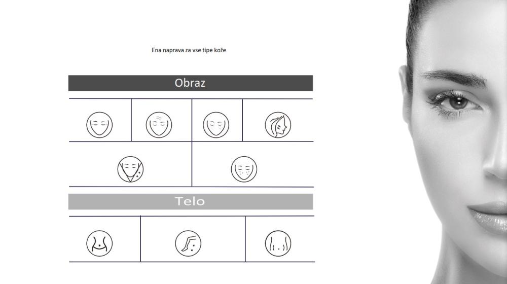 Naprava je primerna za tremaje na področju obraza in telesa.