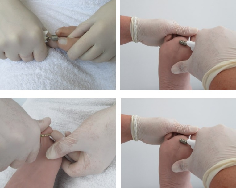 Pedikerski aparat je oblikovan tako, da omogoča učinkovito odstranjevanje trde kože, kurjih očes, žuljev in drugih nepravilnosti na stopalih. Nastavki, ki se uporabljajo z aparatom, so prilagojeni za uporabo na stopalih in nohtih ter omogočajo natančno in varno delo.