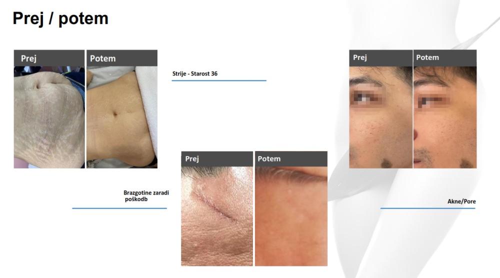 Ta združeni pristop zagotavlja, da je koža temeljito in enakomerno obdelana, kar vodi do izboljšane teksture, manjših gubic, manjših brazgotin in bolj čvrste kože.