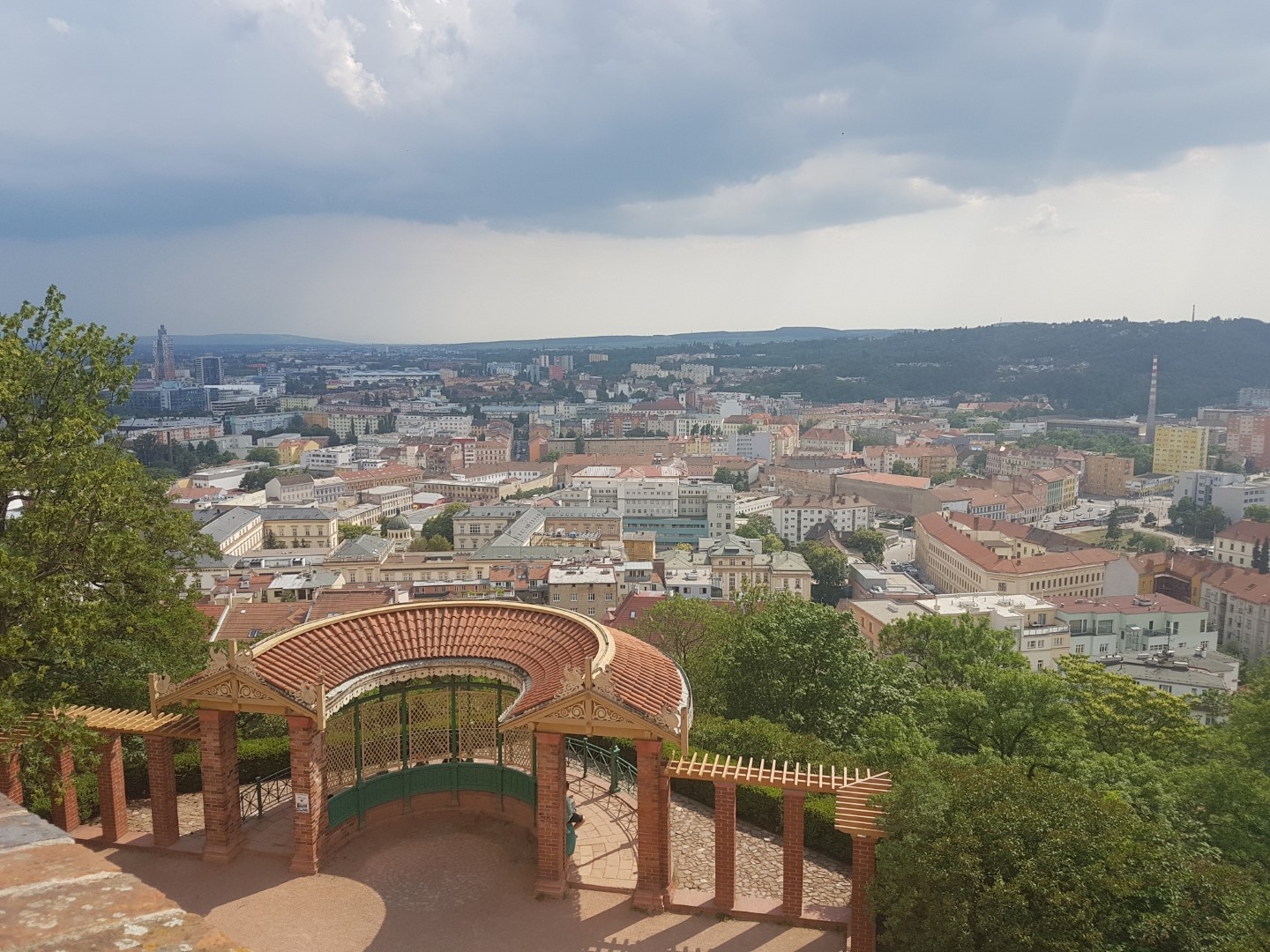 Na poti je sledil postanek s kavico, toplim obrokom, šopsko solato, vse to na prijetnem vrtičku blizu hitre ceste in že smo bili na poti proti drugemu največjemu mestu Češke republike.