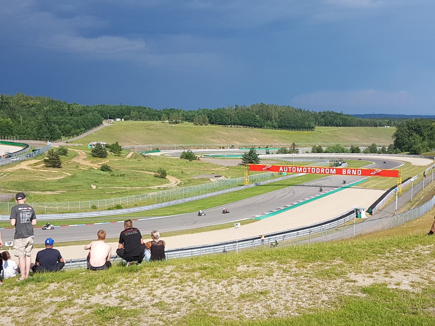 Z nasmeškom na obrazu in suhimi lasmi (kdor jih še ima) smo oddrveli proti MotoGP progi, da dokumentiramo še eno lokacijo. Na naše zadovoljstvo so na progi trenirali številni motoristi, zato smo za par minut bili kot za čas realnega dogajanja med prvenstvom deležni navijaškega vzdušja med zbranimi ljudmi okoli proge. Še kratek krog do skoraj novega hotela na dirkališču in že smo bili na poti proti zadanemu cilju današnjega turističnega dne - Pragi.