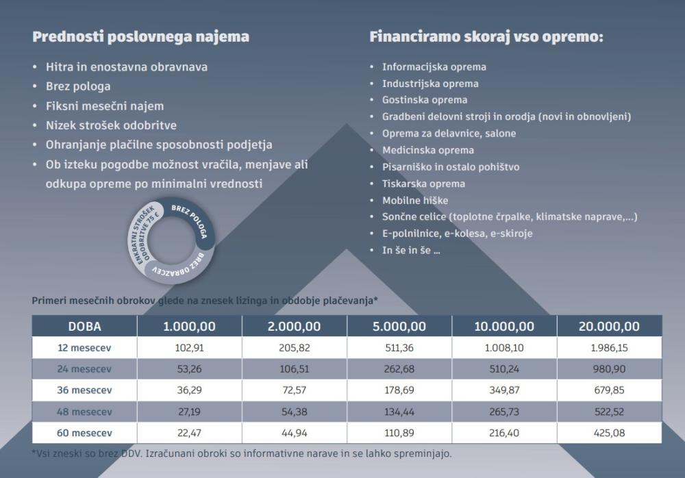 Financiranje na obroke v obliki poslovnega najema za pravne osebe