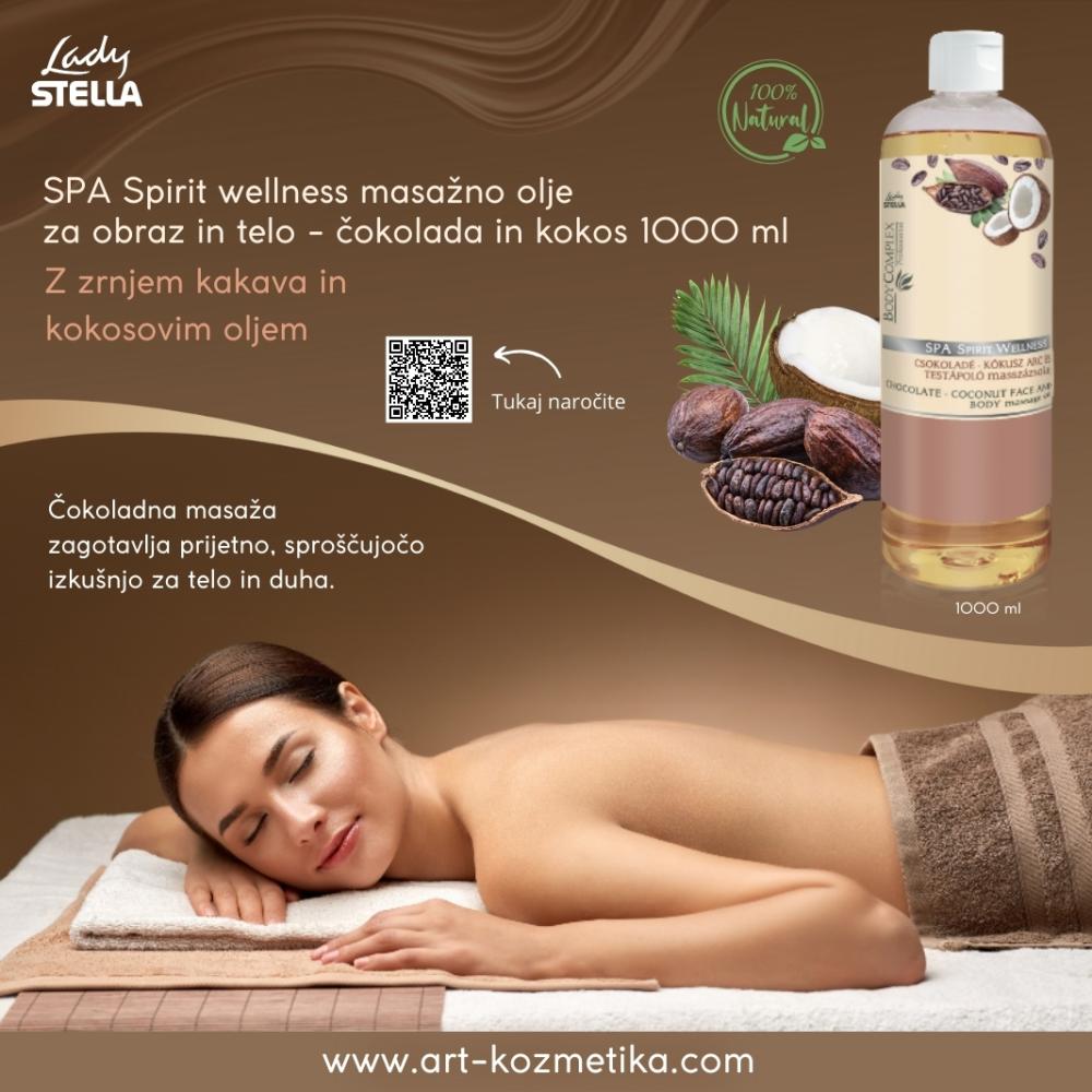Spa Spirit wellness masažno olje za obraz in telo - čokolada in kokos 1000 ml