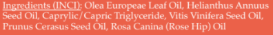 Masažno olje, ki vsebuje olivno olje, naravno olje grozdnih pešk, šipka in češnje, je bogato z vitaminoma A in E.
