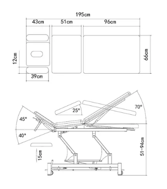 Ta petdelna terapevtska miza je priljubljena izbira med fizioterapevti. Odlikujeta jo zanesljivo in gladko električno nastavljanje višine ter možnost položaja za drenažo, vse upravljano s stopalko.